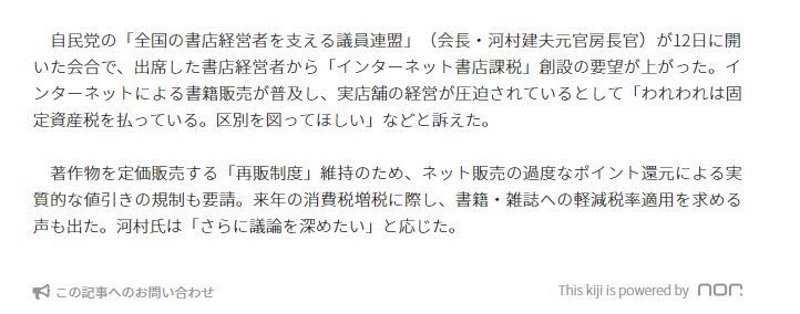 ところが、2018年7月12日に行われた自民党の会合にて、出席した書店経営者から『インターネット書店課税』
